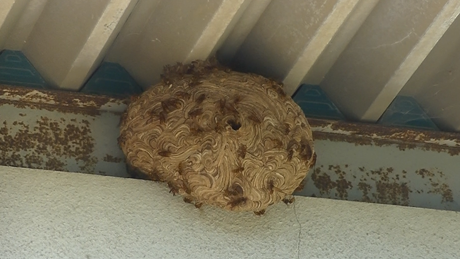 「家の裏の2階軒下に大きなスズメバチの巣があると、近所の人に言われてみてみると、ビックリするくさい大きな巣があるので撤去してください!」
